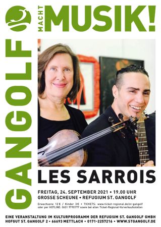 Bewegend, emotional und immer ganz nah dran am Publikum: Am Freitag, 24. September 2021 waren „Les Sarrois“ zu Gast in der Großen Scheune des Refugiums St. Gangolf. Pamela Buell (Geige, Kontrabass und Gesang) und Brahim Bonois (Gitarre und Gesang) überschreiten musikalisch Grenzen: Das Repertoire des Duos reicht von französischen Chansons über deutsche Lieder, amerikanischen Swing, Jazz und Bossa Nova bis zurück in die Epochen klassischer Musik.