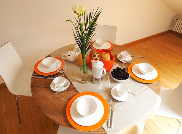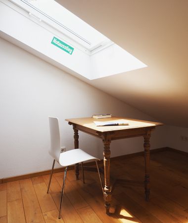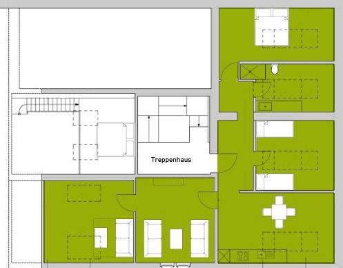 Großzügige Dachgeschosswohnung für 2 bis 6 Personen mit einem Schlafzimmer (Doppelbett), einem Kinderzimmer (2 Einzelbetten), einem Wohnzimmer, einem Fernsehzimmer (Schlafsofa), Küche und Bad.